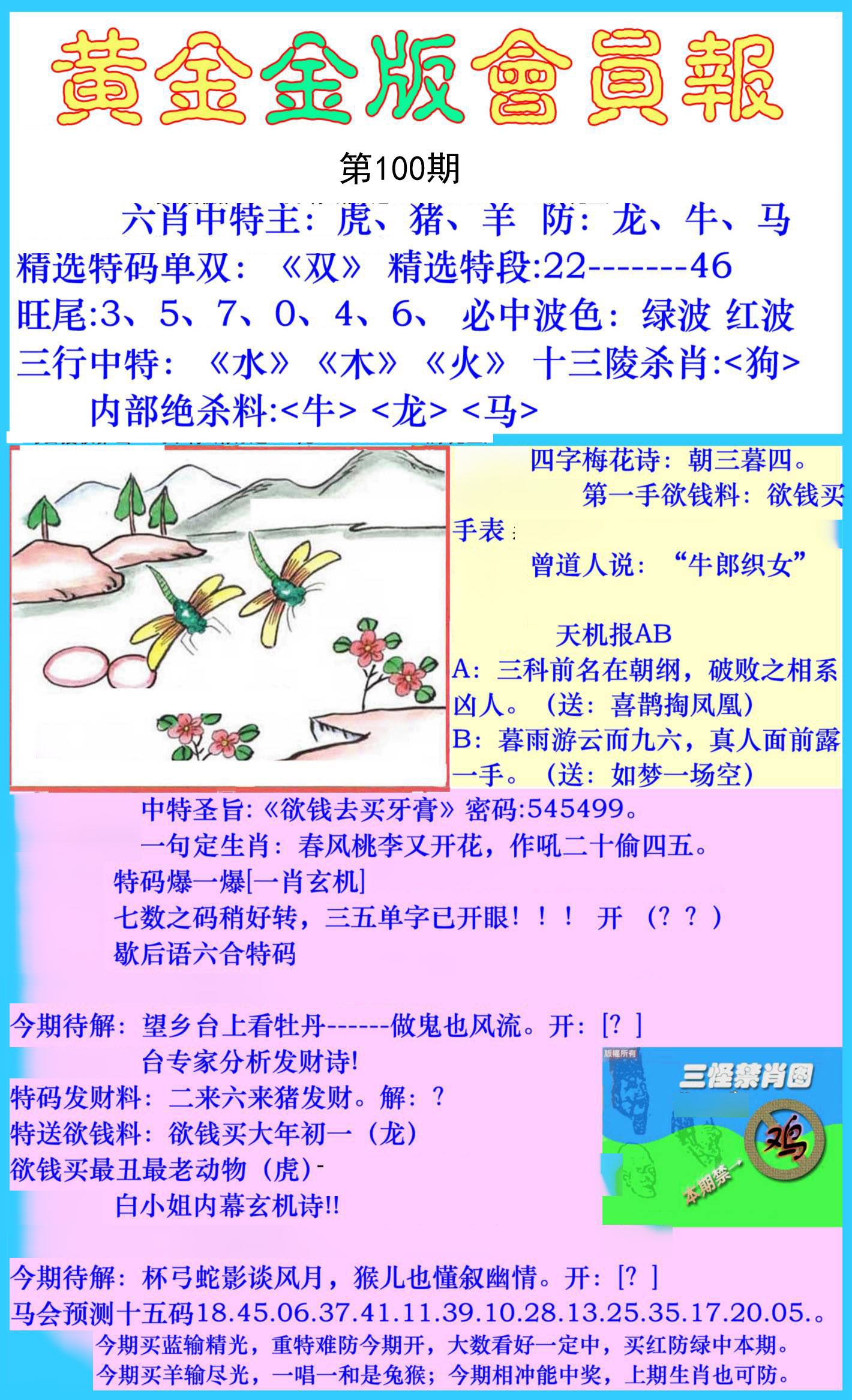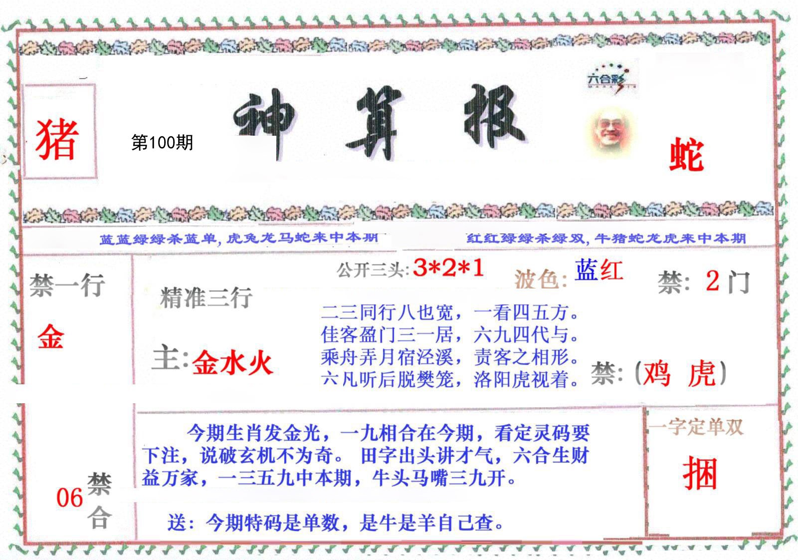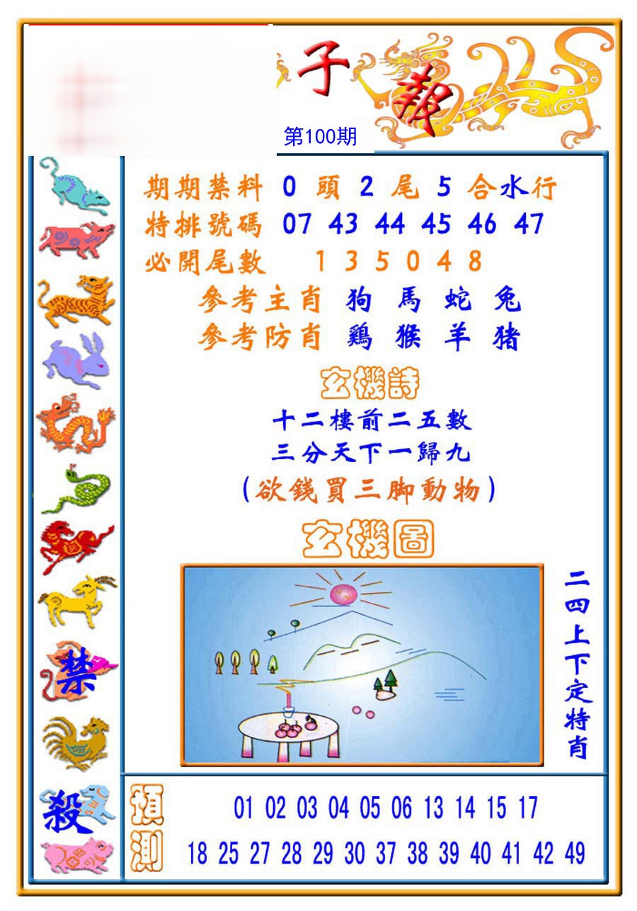 | 100期推荐五肖: 牛猴马兔龙 ~~稳准狠 |